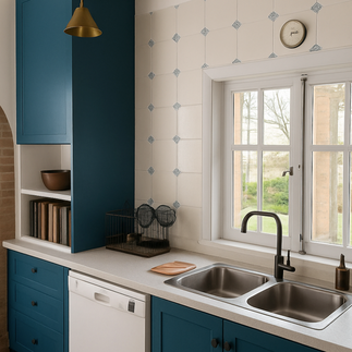 In this kitchen, the challenge was to integrate a large hot water boiler more seamlessly into the space. We proposed to hide it within a custom cabinet (as you can see, currently still a work in progress), and explored several color options to ensure the new element will blend perfectly with the existing kitchen. 🎨